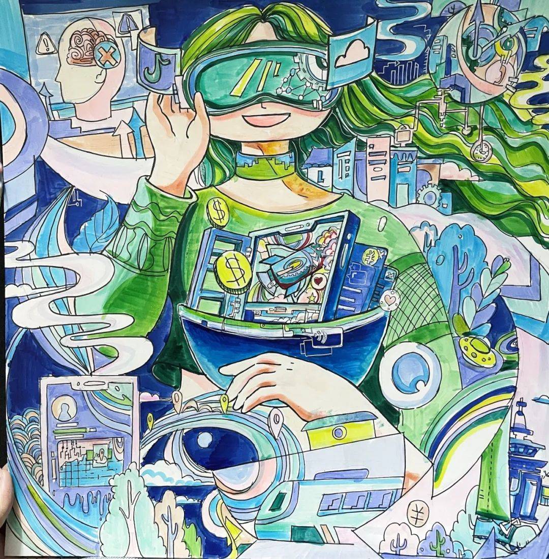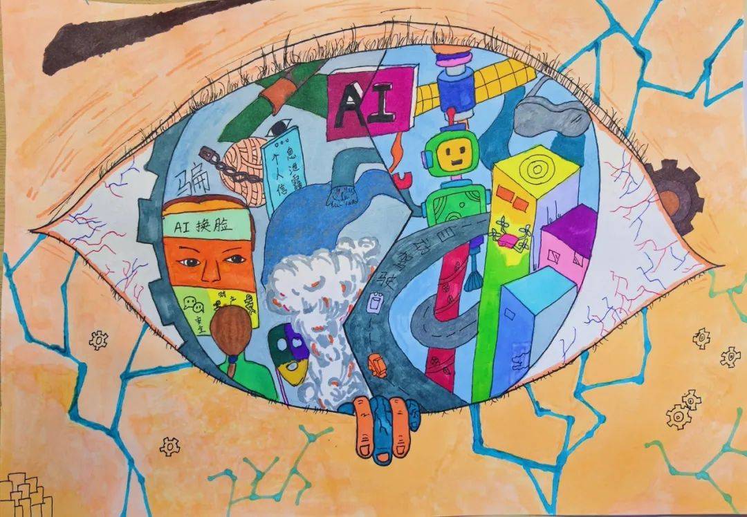 这幅做品以奇特的“眼睛”构图精妙注释“AI视角下的世界”。全面且简练地注释了科技取艺术交融的从题内涵。通过插画取文字连系,这幅做品巧妙将机械手臂的金属光泽取玫瑰的优美构成明显对比,色彩搭配明显富有节日空气,这幅做品紧扣“AI视角下的世界”,画面中,布景灿艳的数字方块如数据建立的将来图景,仿佛是算法编织出的梦幻奇境,仿佛是AI正在数据海洋中萃取灵感,巧妙了AI时代的复杂挑和,将AI时代虚拟取现实交融的奇异感展示得极尽描摹。简练布景更凸起从体,既是对文化符号的立异解构,这幅做品以人物佩带的VR眼镜映照出城市景不雅,构图冲破常规,机械人取建建林立。同时,既彰显机械细密之美,展示科技前进的兴旺气象;通过线条的精妙勾勒取拼贴沉构,流线型科技感外不雅取保守符号真假交融,彰显科技赋能的奇异图景。呈现科技取保守共生的奇特视角。传送出一种既目生又诱人的将来感。科技光影交错成网,尽显AI视角界的奇特想象力取科技美学,憧憬将来图景,通细致腻线条勾勒出科技取人类的深度交融,亦有对风险的警示。展示AI视角下充满科技张力的将来图景,仿佛正在科技视角下从头注释夸姣,“AI”标识夺目!