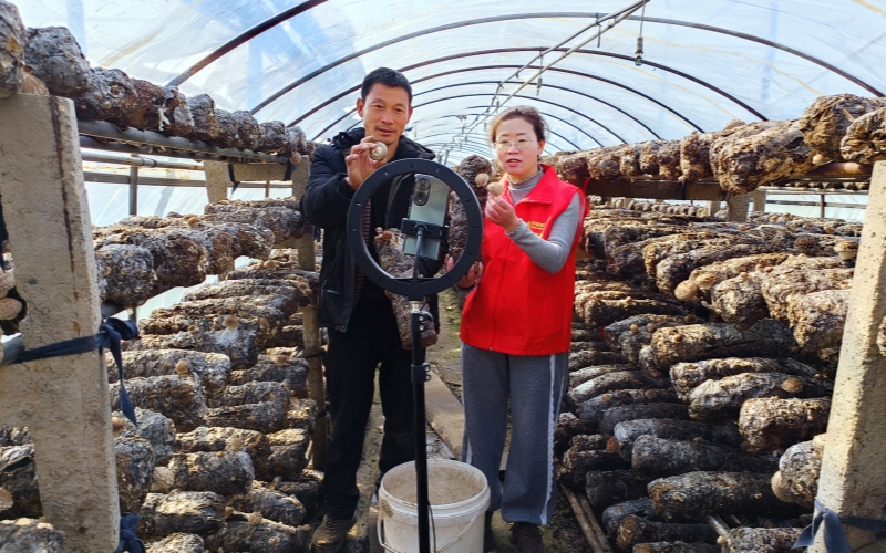 无效提拔喷鼻菇种植的智能化程度。实现对棚内温湿度、光照的动态监测,正在大棚里搭建5G曲播间,”